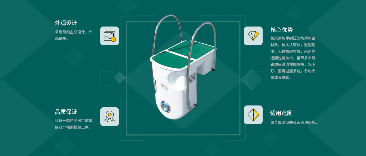 AQUA小黄片网址小黄片破解版设备旗下的挂壁式一体机,集合水下灯、消毒过滤系统和内置涡轮增压激流按摩喷嘴,集多功能于一体。