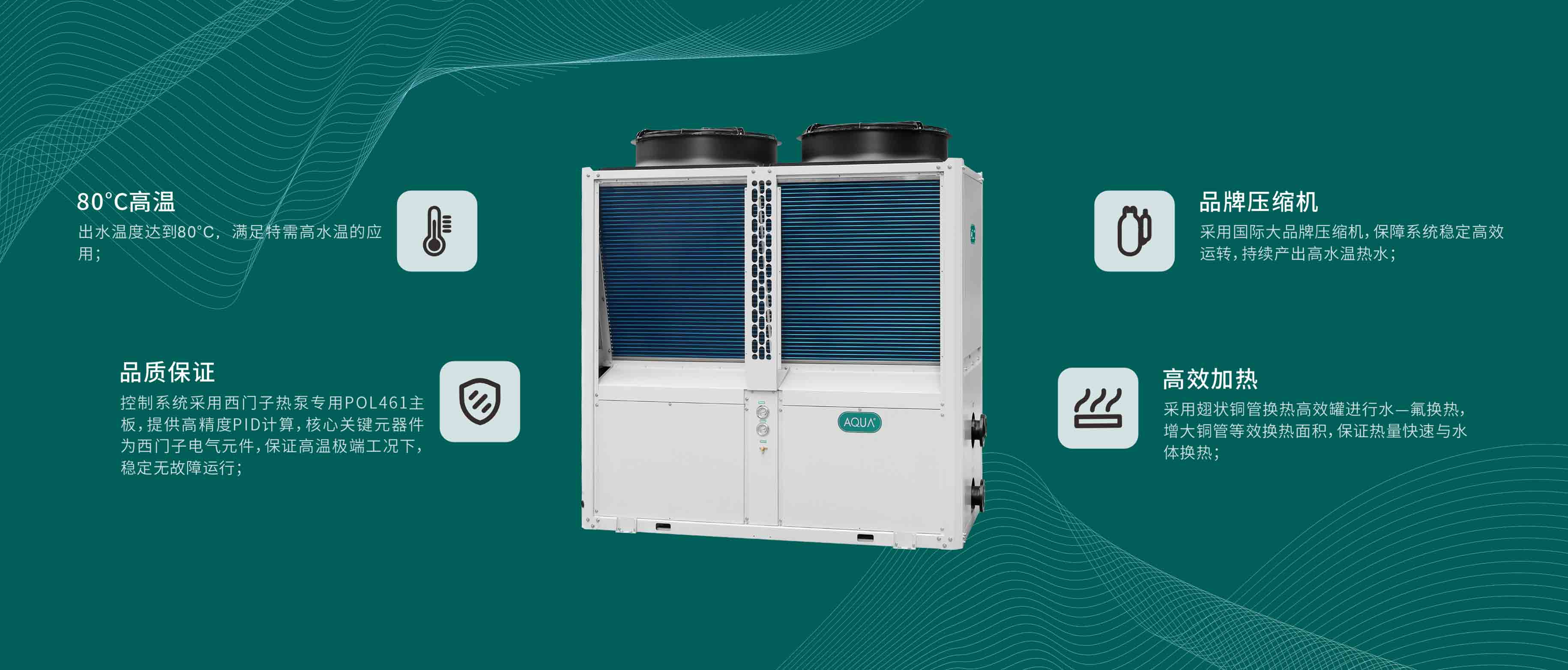 -采用国际大品牌压缩机,保障系统稳定高效运转,持续产出高水温热水;