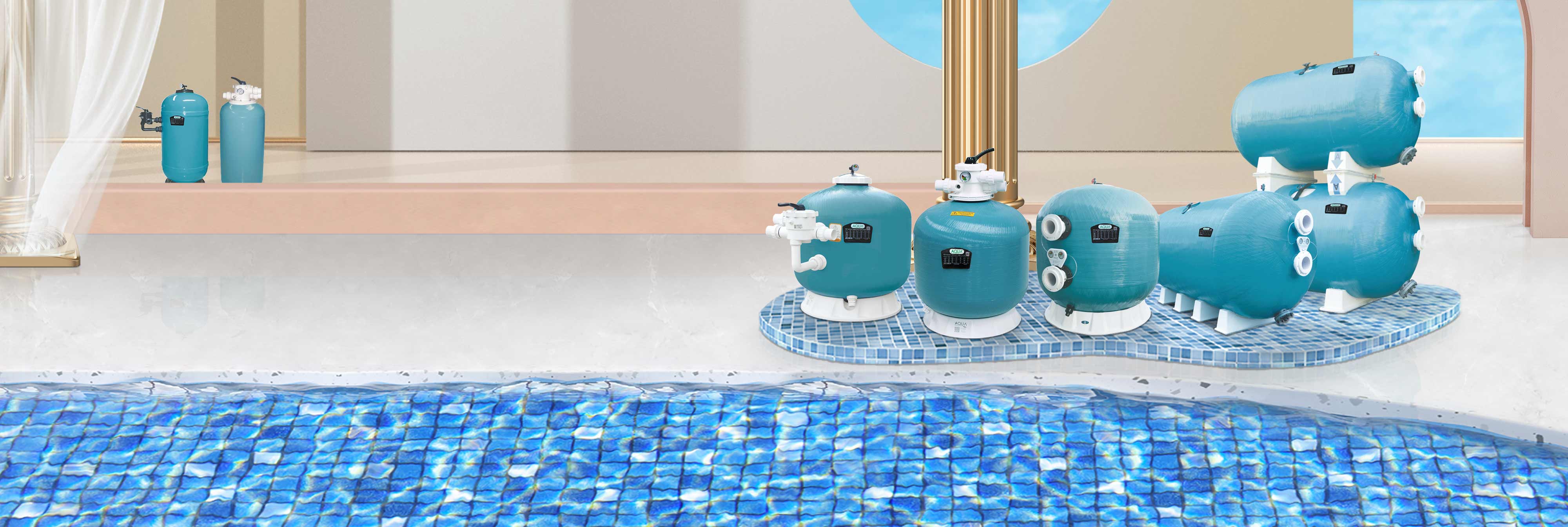 砂缸本体材质有玻璃纤维、不锈钢等材质。砂缸是利用特殊的滤沙将池中的微小污物消除。滤沙作为清除污物的介质,被装填在过滤器内的腔体内。当控制旋钮打到“FILTER"位置时,含有悬浮的污物微粒的池水由泵压入过滤装置中,再由控制开关的引导到达过滤器的出水口。