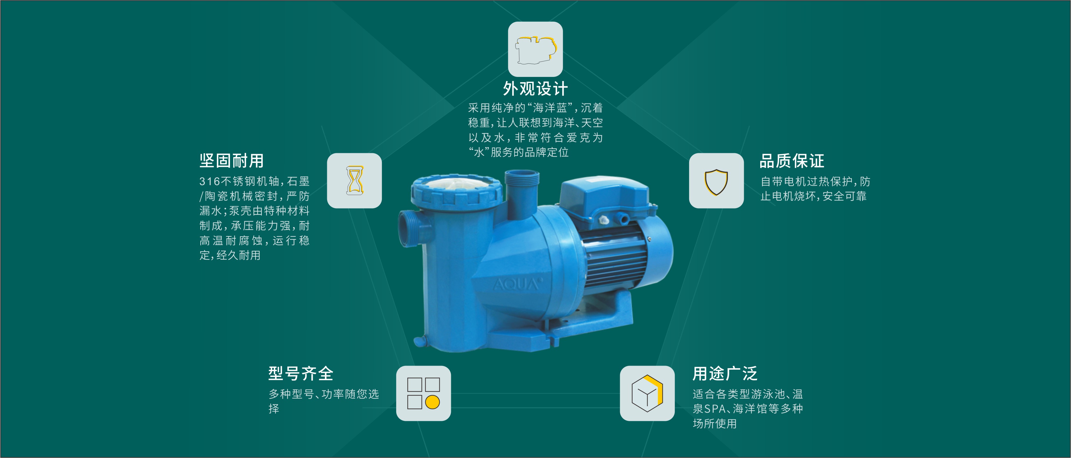 It can ensure the normal and orderly circulation of the water body, which is suitable for various types of swimming pools, hot springs SPA, aquariums and other places.